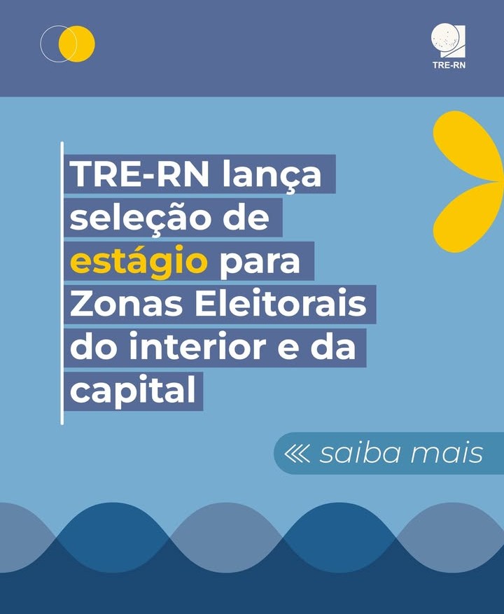 O Tribunal Regional Eleitoral do Rio Grande do Norte abriu processo seletivo para estágio de nível superior nas Zonas Eleitorais do estado, com início das atividades previsto para 23 de abril de 2026. A seleção será realizada em parceria com o Centro de Integração Empresa-Escola (CIEE) e destina-se à formação de cadastro para preenchimento de vagas ao longo do Programa de Estágio 2026.